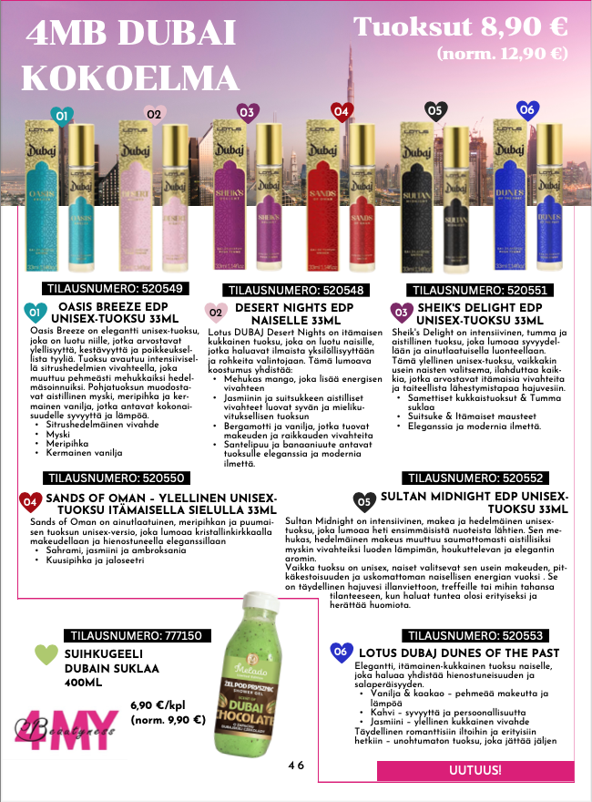 DUBAI tuoksunäytesetti (sis. 6 kpl erilaista tuoksunäytettä)